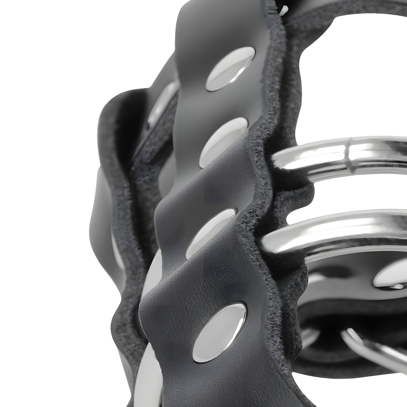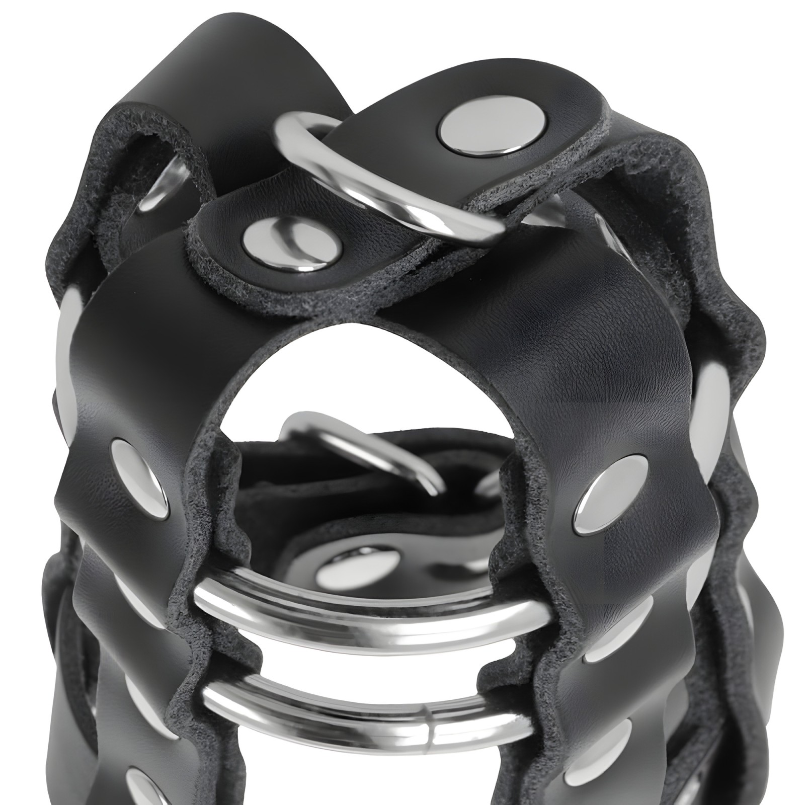 Made from durable, hypoallergenic vegan leather, it features adjustable rings to create the perfect fit.