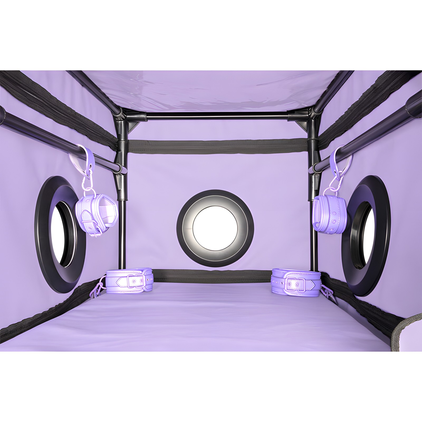 In a striking purple hue, this intimate space is perfect for immobilization and roleplay, allowing for comfortable positions.