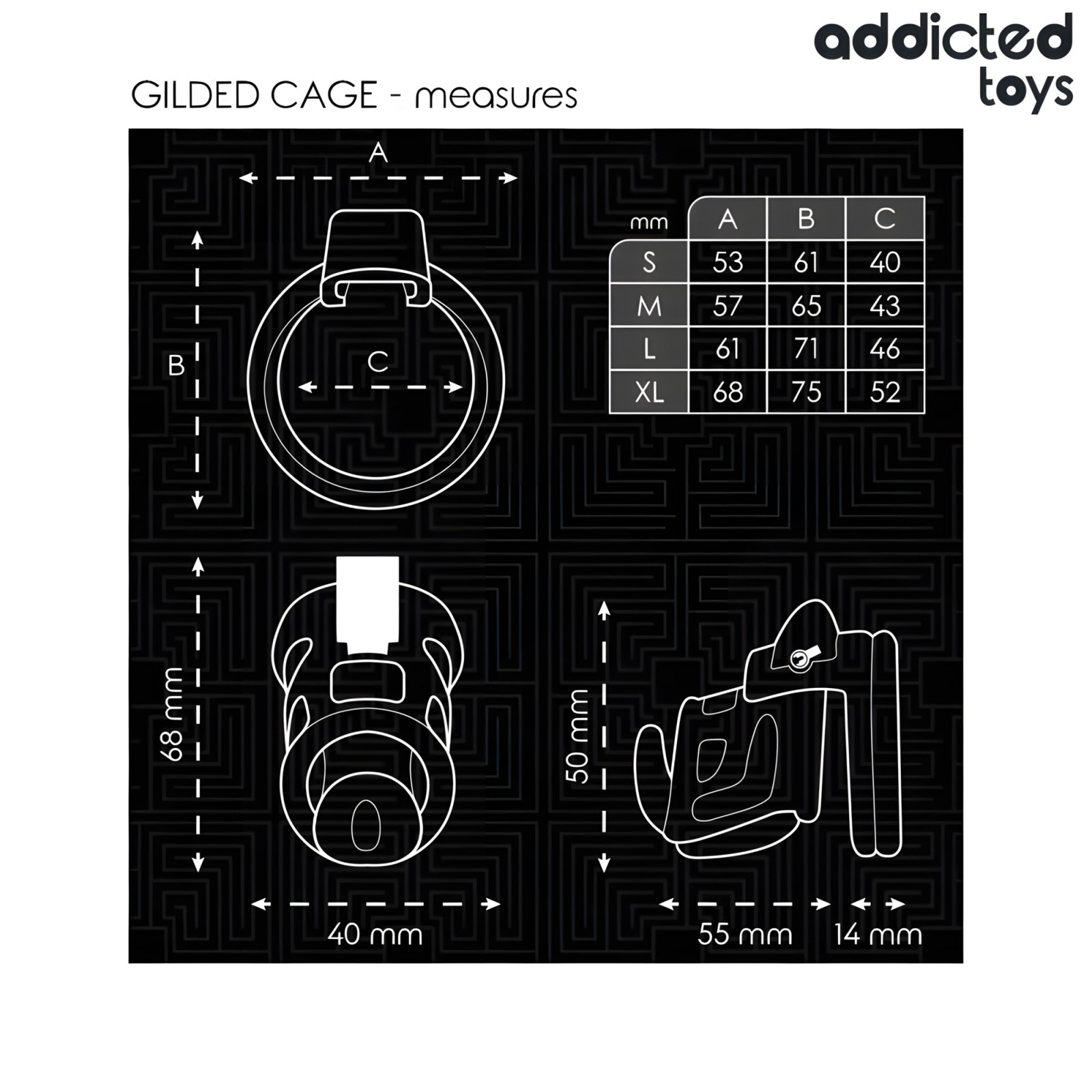- Penis cage height: 55mm