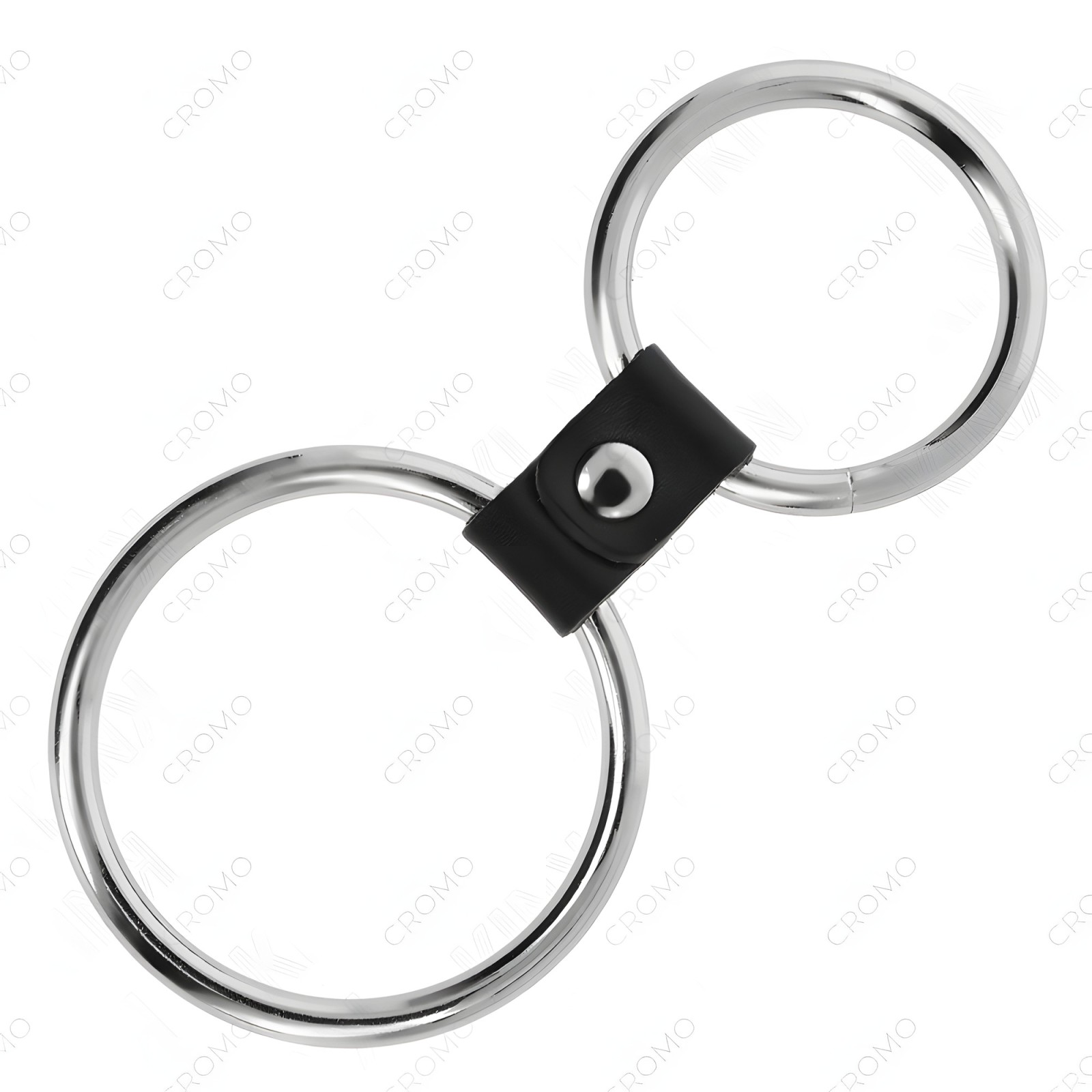 Kink - Double Metal Penis Ring 3.7 cm to 5 cm Connected by Faux Leather Strap