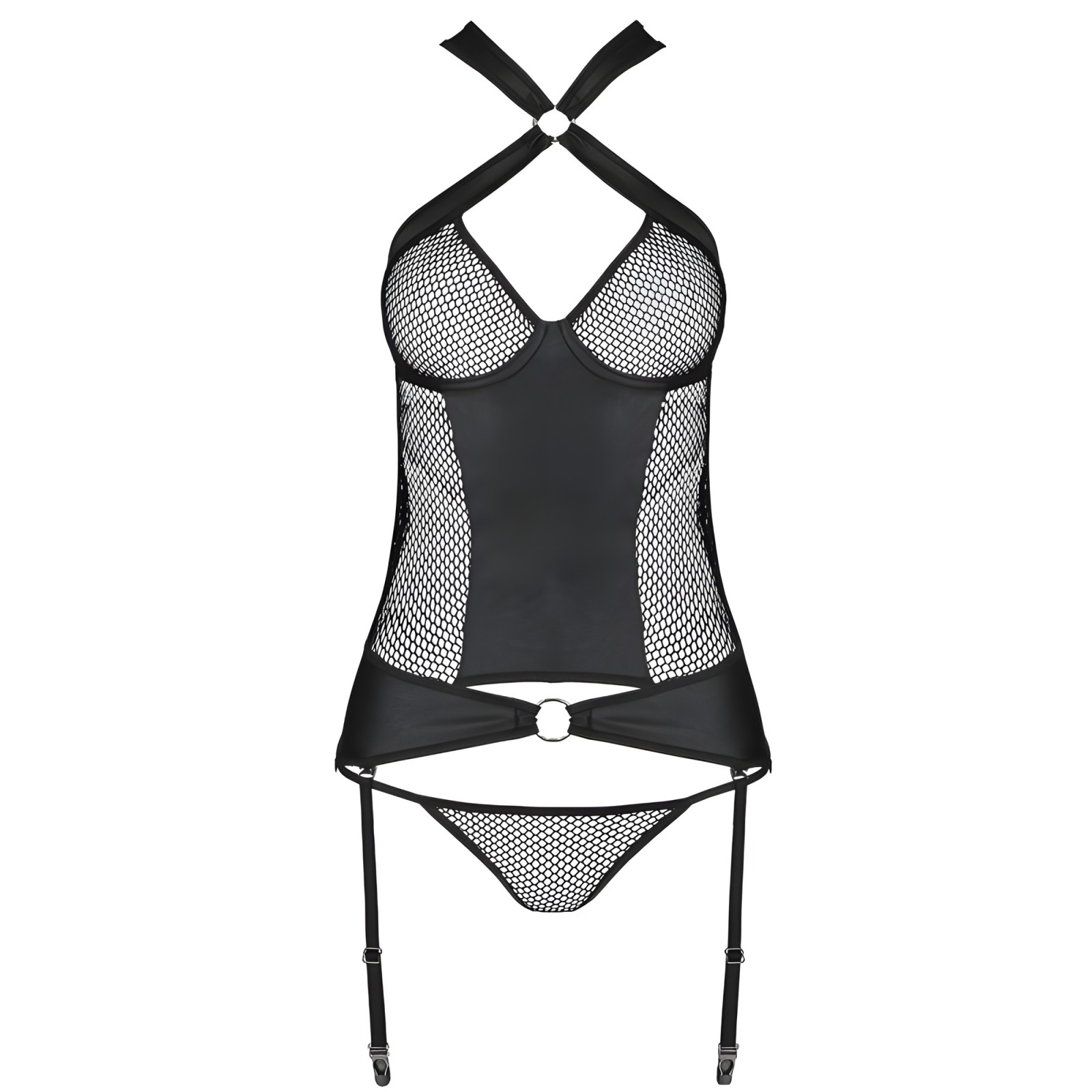Transform your silhouette with the Amanda corset by Passion, combining eco-leather and sensual mesh.
