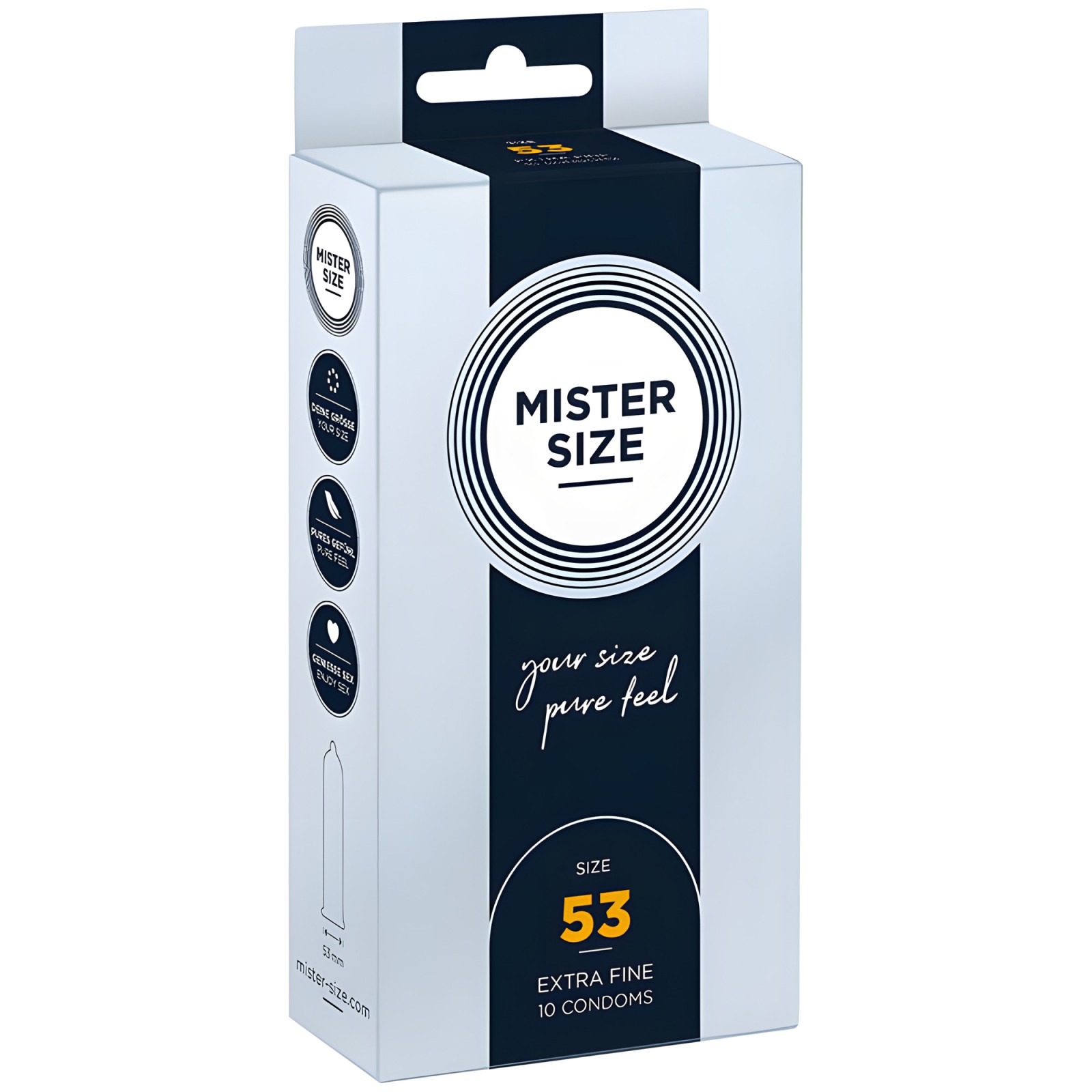 Experience unparalleled comfort with Mister Size 53 condoms, designed for those who prefer standard sizes.