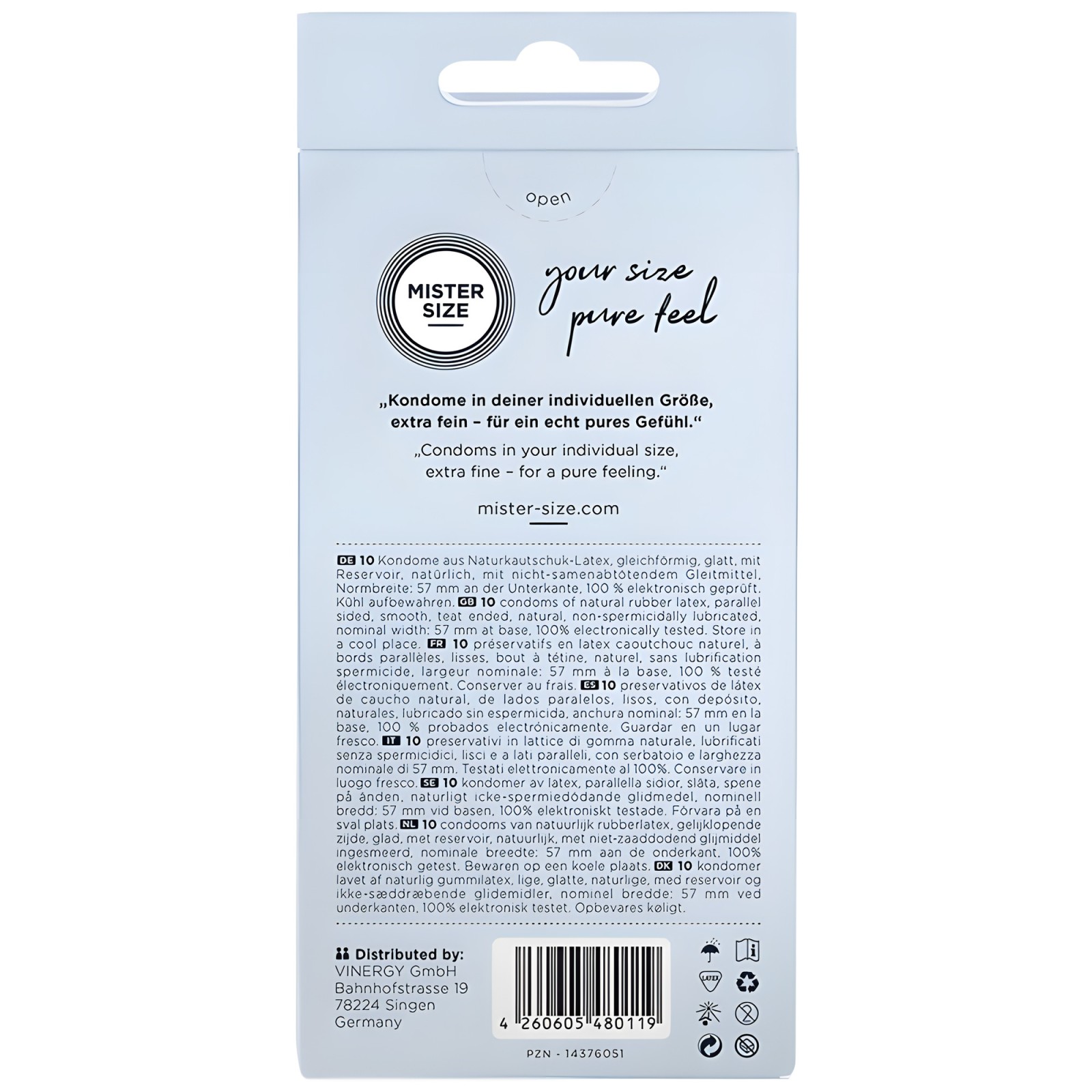 Experience the freedom of a perfect fit with Mister Size 57 condoms.
