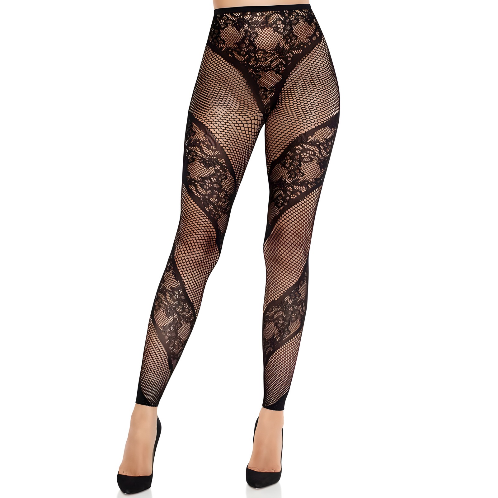 Enhance your legs with the Leg Avenue Lace and Net Illusion Tights.
