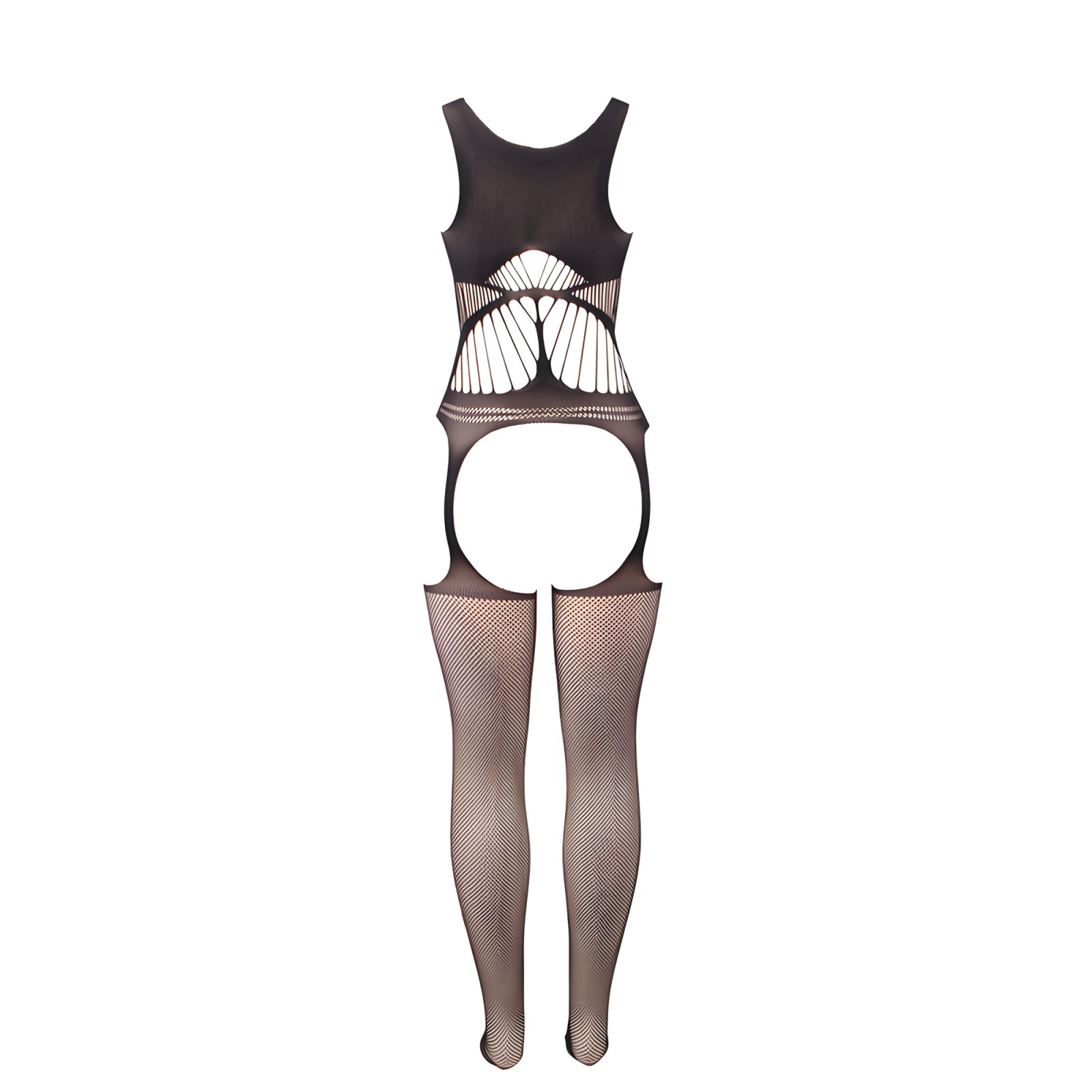 Elevate your lingerie collection with this stunning crotchless fishnet bodystocking designed for maximum seduction.