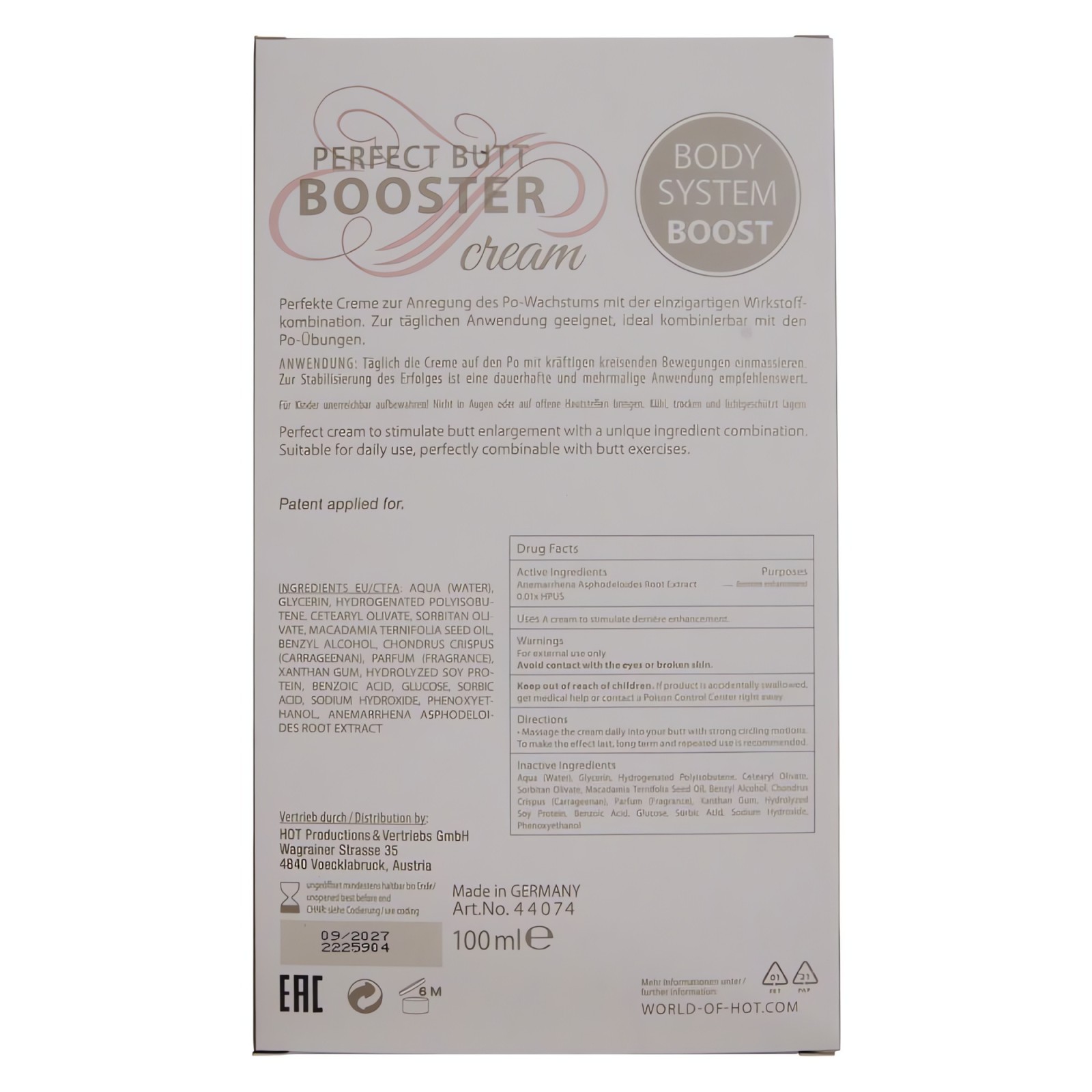 XXL Booty Booster Cream 100ml by Hot