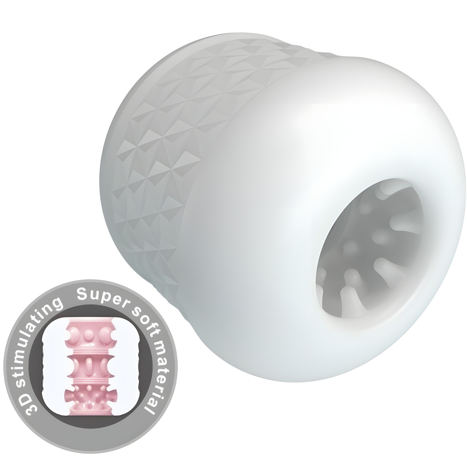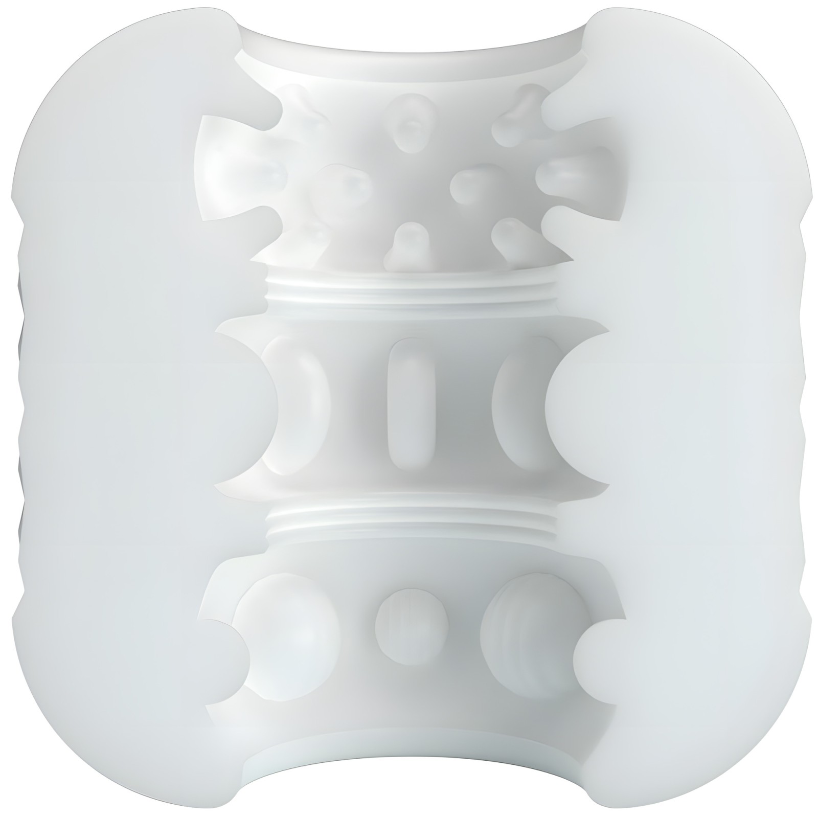 Featuring dual-entry and a textured channel, this white masturbator is designed to provide intense sensations.