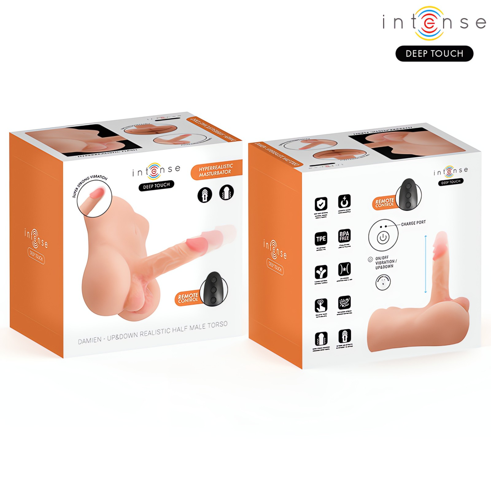 Intense Deep Touch - Damien Realistic Torso with Anus & Dildo, Vibration & Pushing