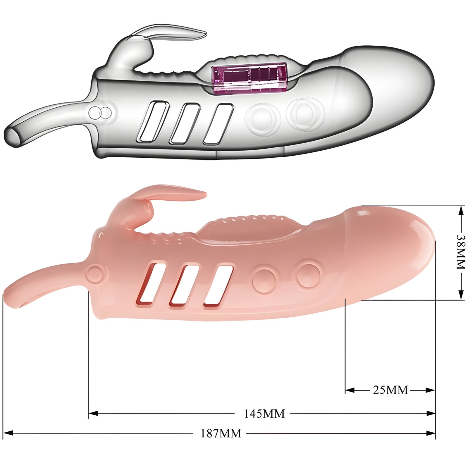 This vibrating penis sleeve is designed to enhance erections and pleasure, with a bunny vibrator that targets the clitoris, ensuring satisfaction for both partners.