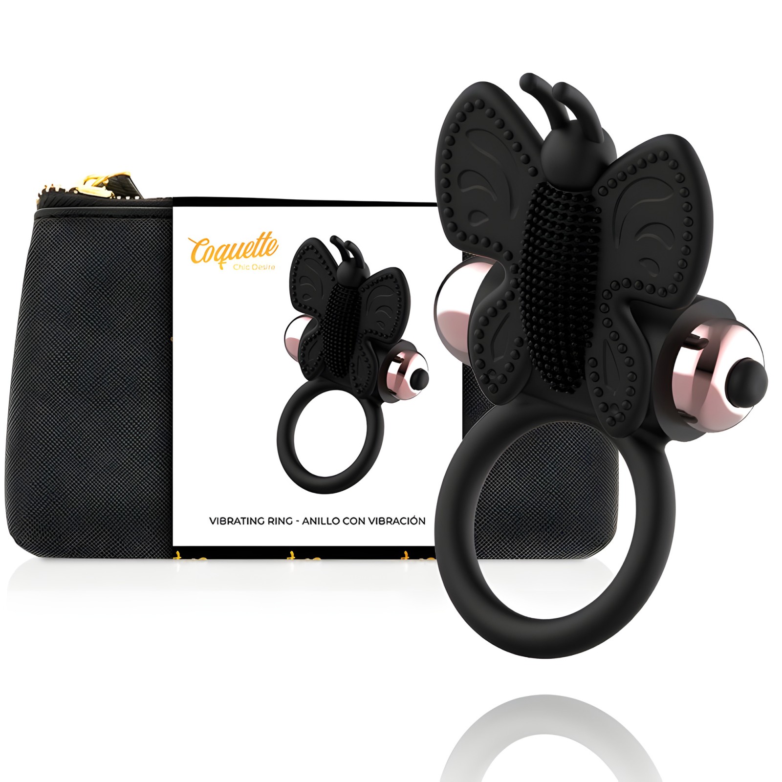 Coquette Chic Desire - Cock Ring Butterfly Anillo Vibrador Negro / Gold