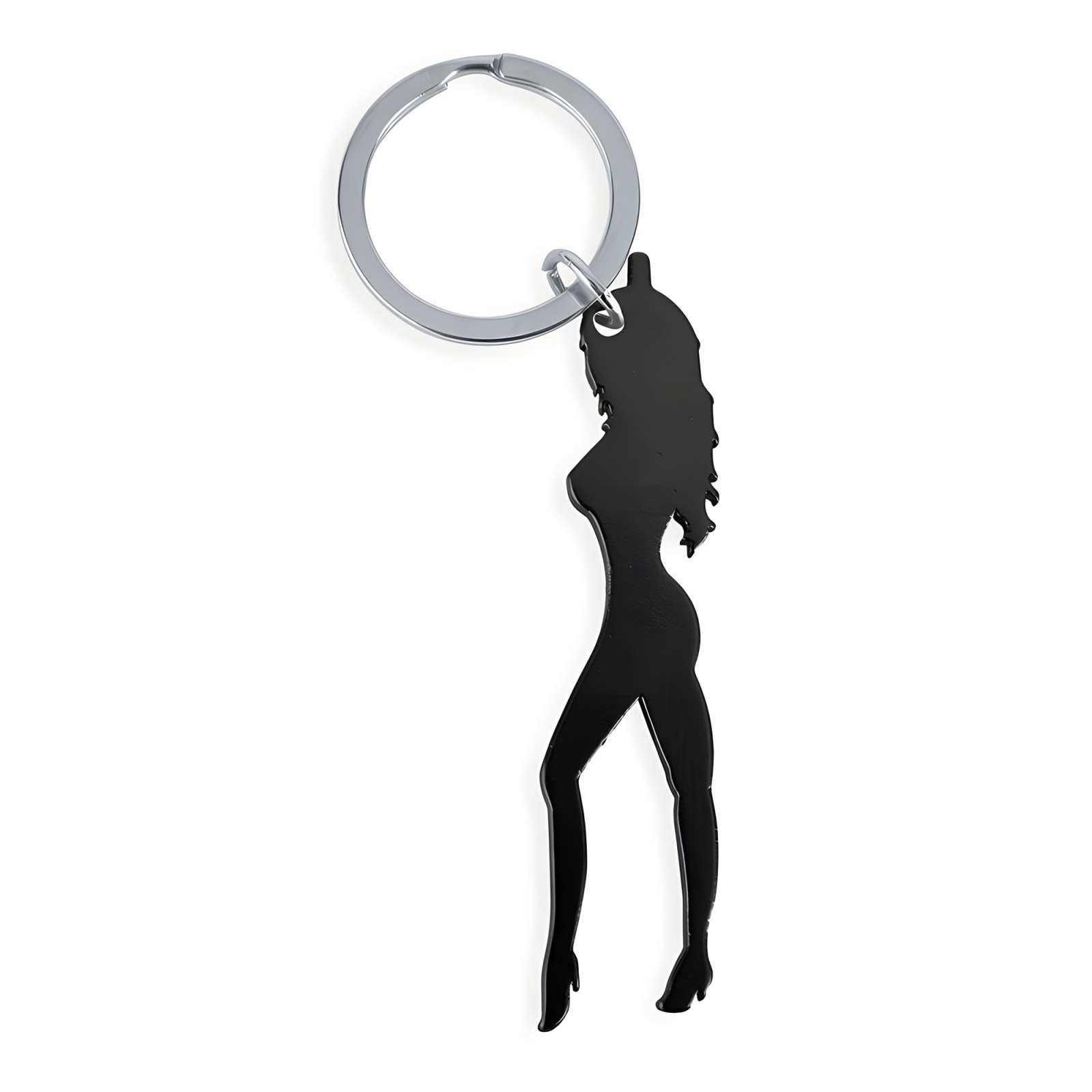 Llavero Con Silueta De Mujer Color Negro Con Abridor De Cerveza