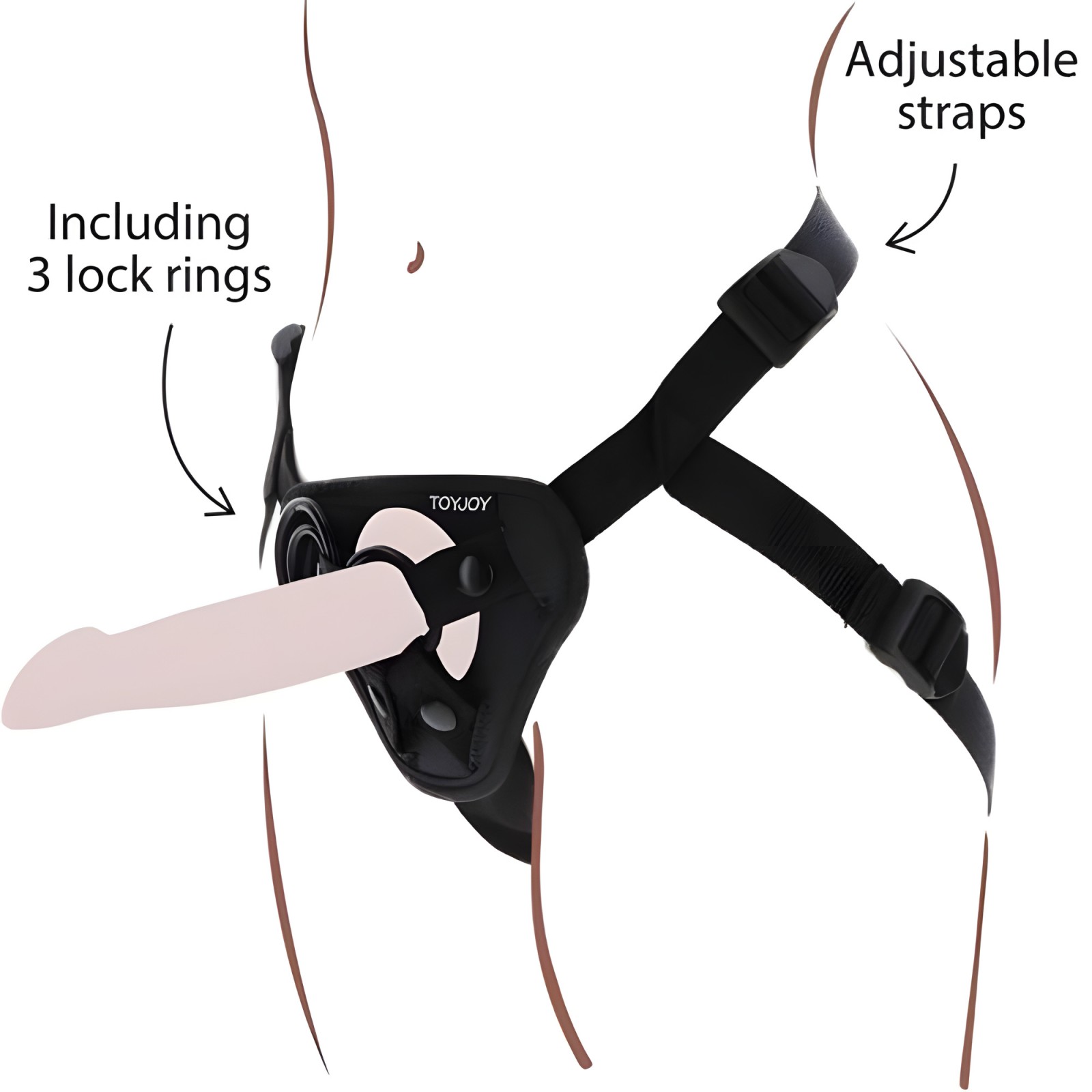 - Incluye tres anillos de silicona para diferentes tamaños de dildo