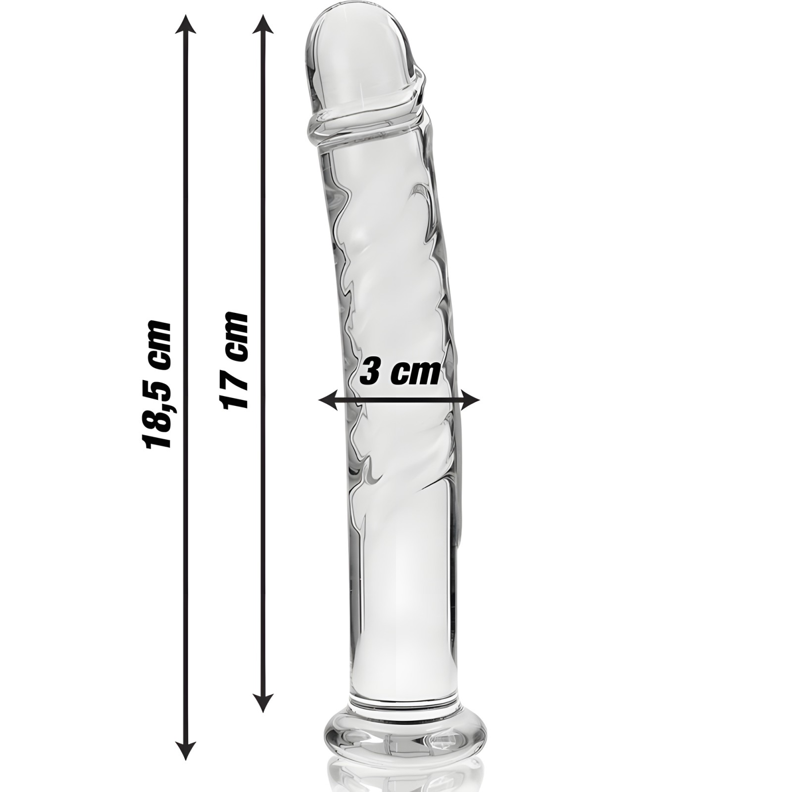 Este impresionante dildo transparente está fabricado con vidrio borosilicato de alta calidad, ofreciendo sensaciones lujosas y fácil limpieza.