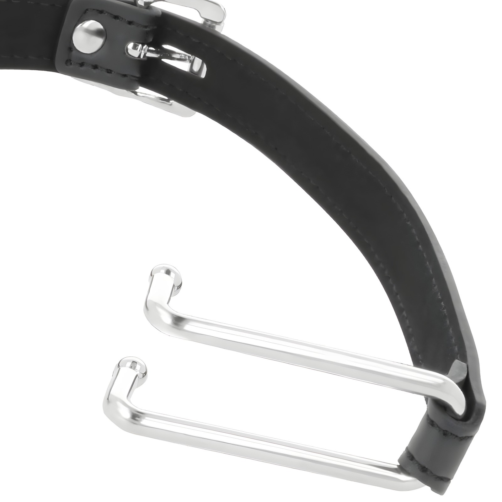 Esta mordaza tiene correas de cuero de calidad y cuenta con elegantes costuras a lo largo de las correas.