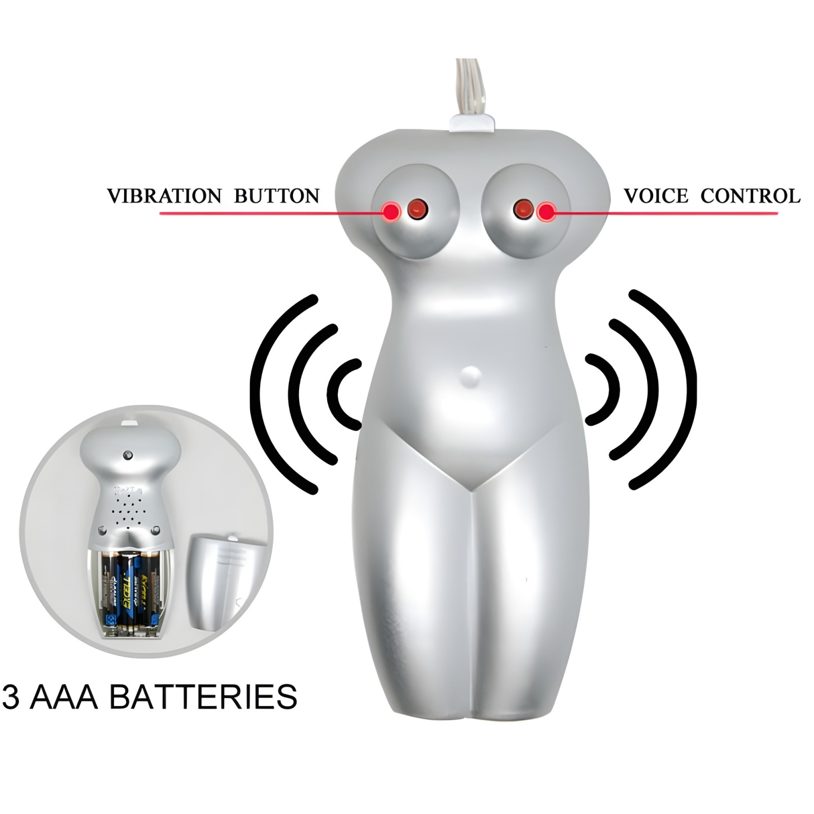 Además, cuenta con dos potentes balas vibradoras y un sistema de voz controlado por un mando exclusivo.