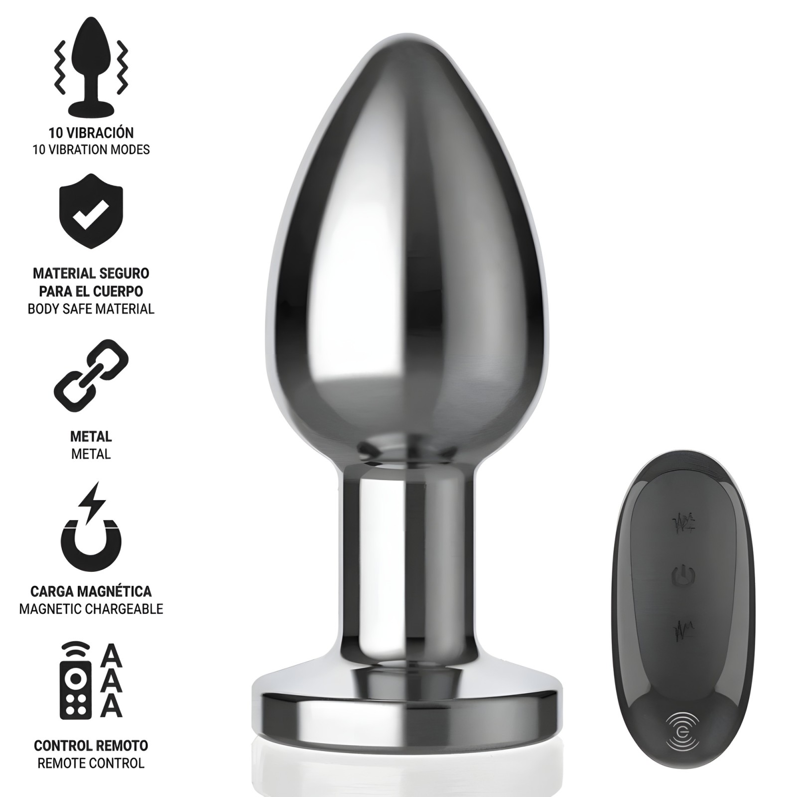 Intense - Plug Anal 10 Vibraciones Metal Con Control Remoto L