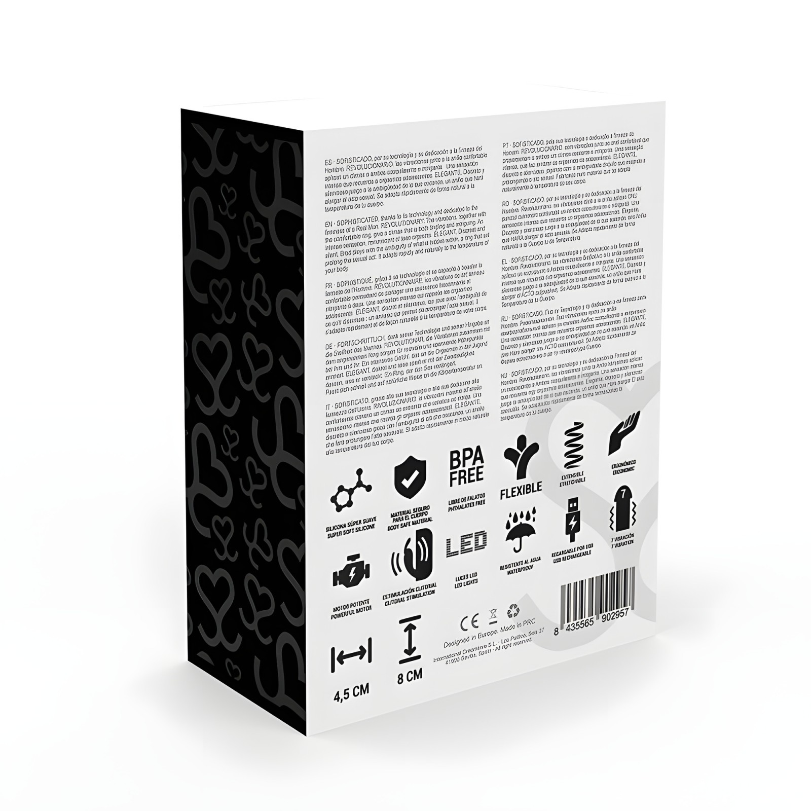 - Silicona médica 100%, libre de ftalatos, segura para el cuerpo.