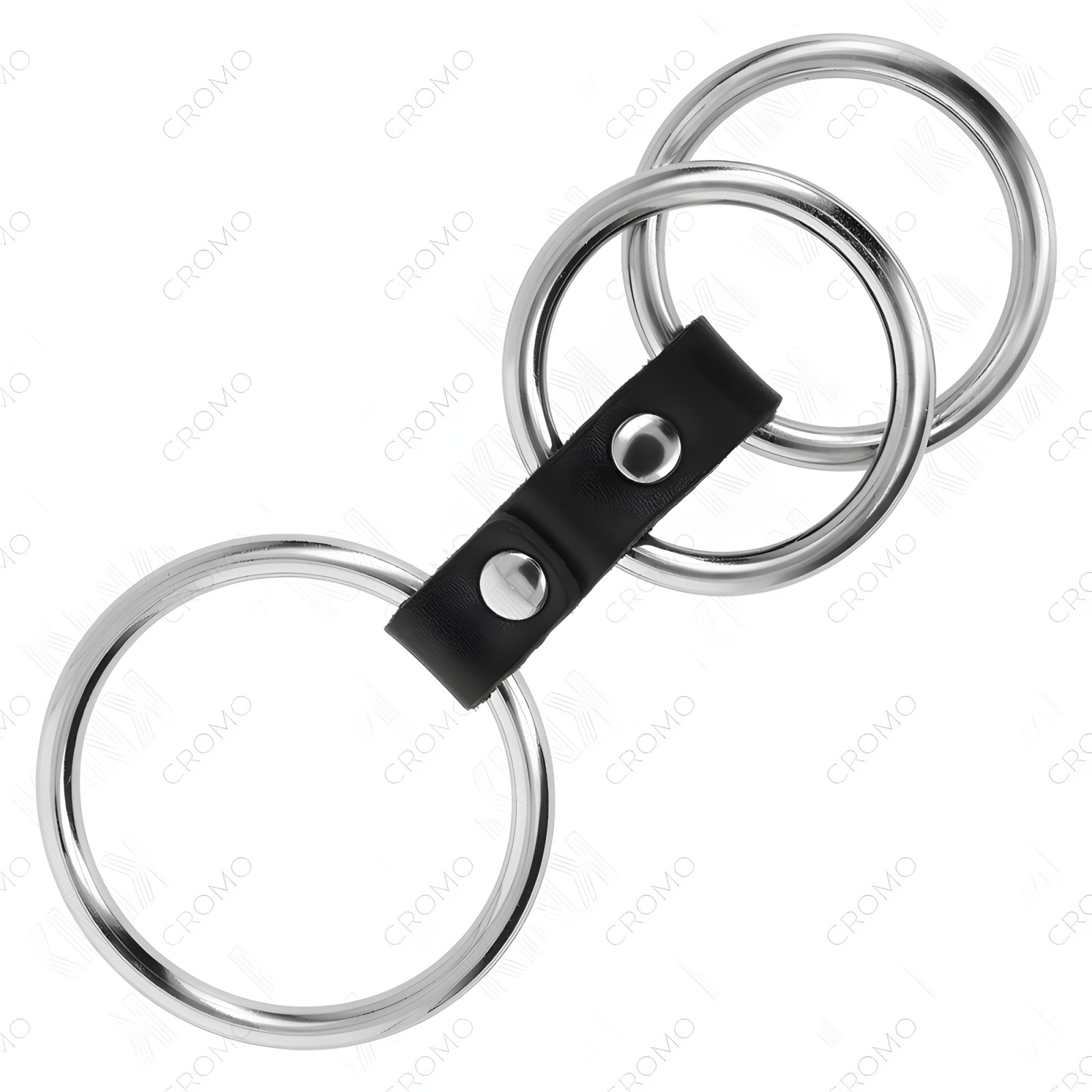 Kink - Anillo Pene Triple Metal 3.7 Cm A 5 Cm Conectados Con Cuero