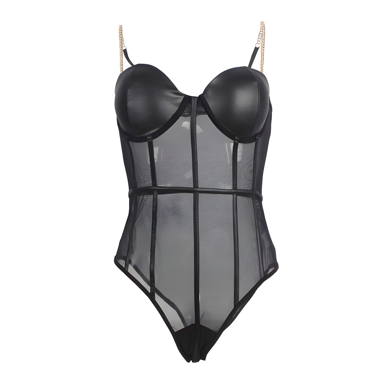 Diseñado para acentuar tu figura, presenta paneles transparentes y tirantes metálicos para un look glamuroso.