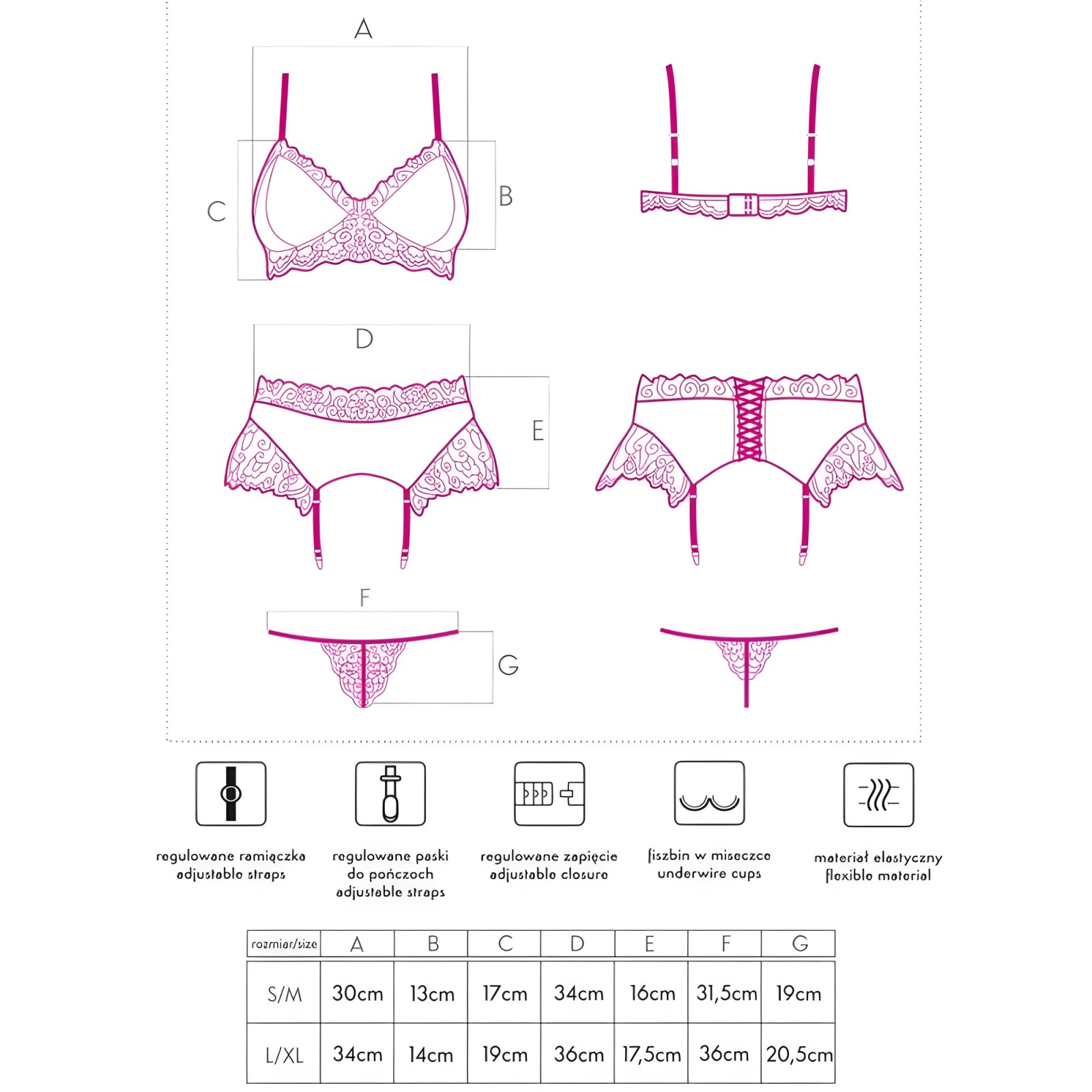 - Incluye tanga y liguero a juego