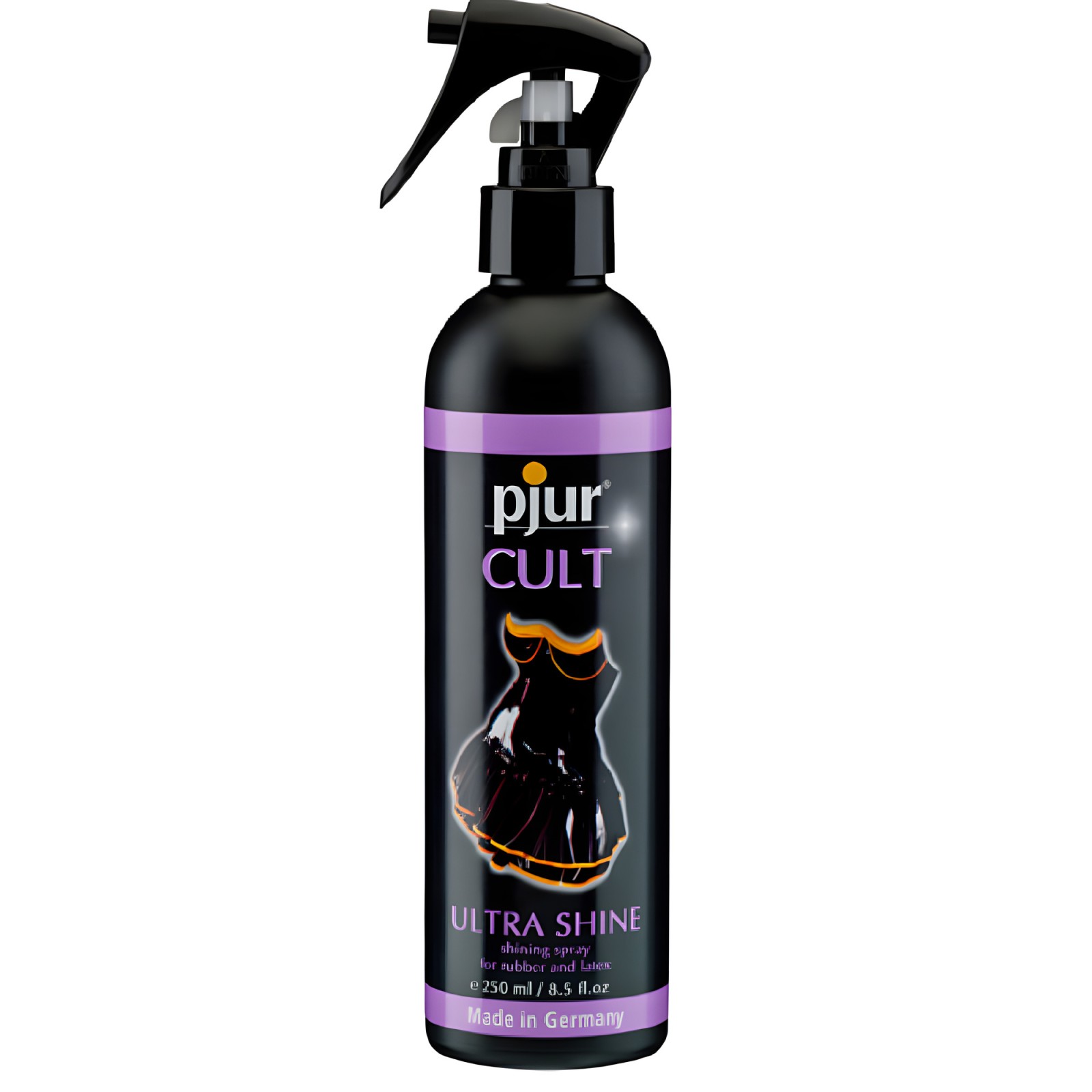 Mantén tu ropa de látex brillante con Pjur Cult Ultra Shine, diseñado para realzar tus atuendos mientras protege el material.