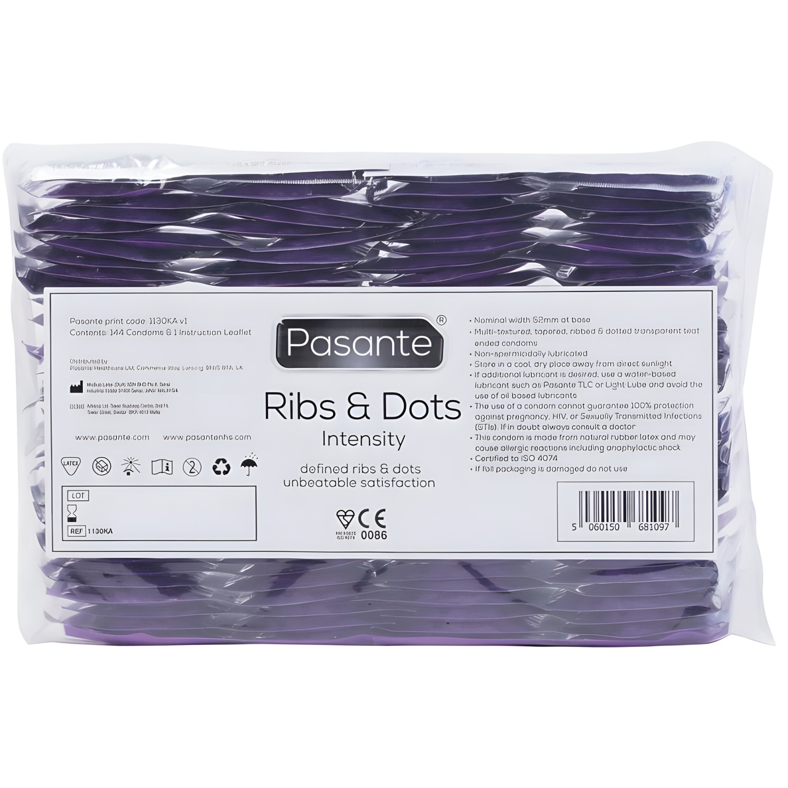 Experimenta el placer simultáneo con los preservativos Intensity Bulk de Pasante, diseñados con estrías y puntos multitexturizados para una mayor estimulación.