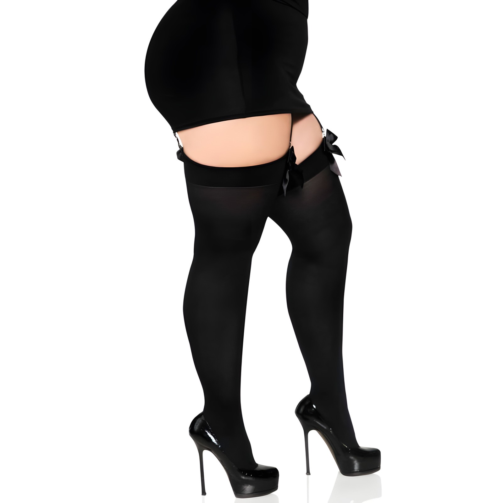 Leg Avenue - Medias Altas Con Lacito Negro Talla Grande