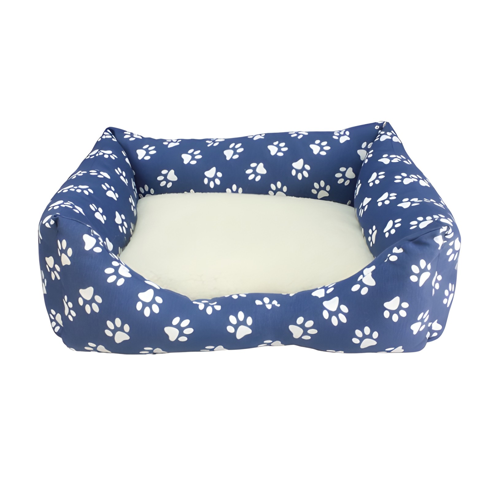 Square Dog Bed with Blue Paw Prints - 50x45x17cm