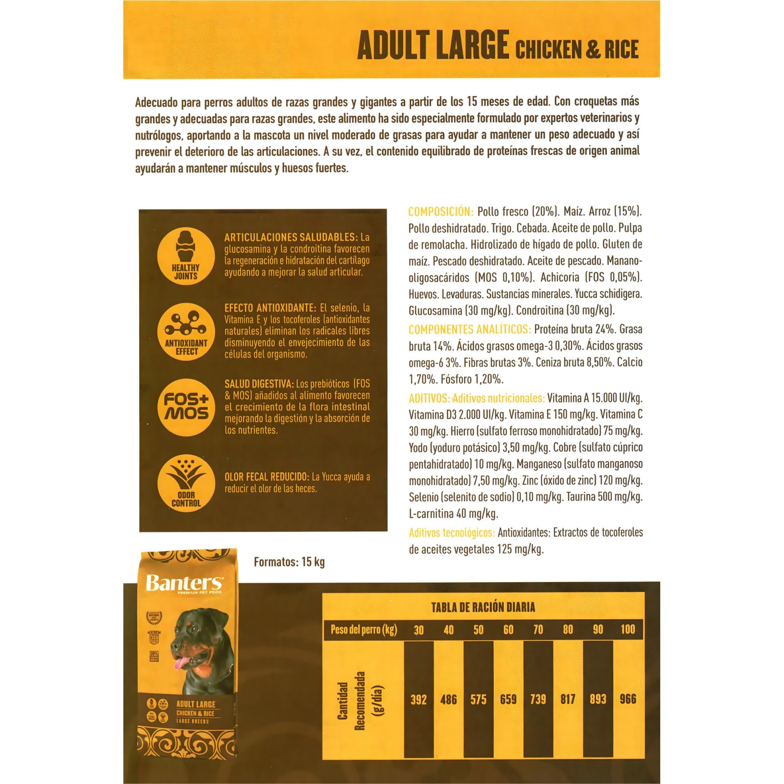 Give your large breed dog the nutrition they deserve with Banters Dog Adult Large Breed 15 Kg.