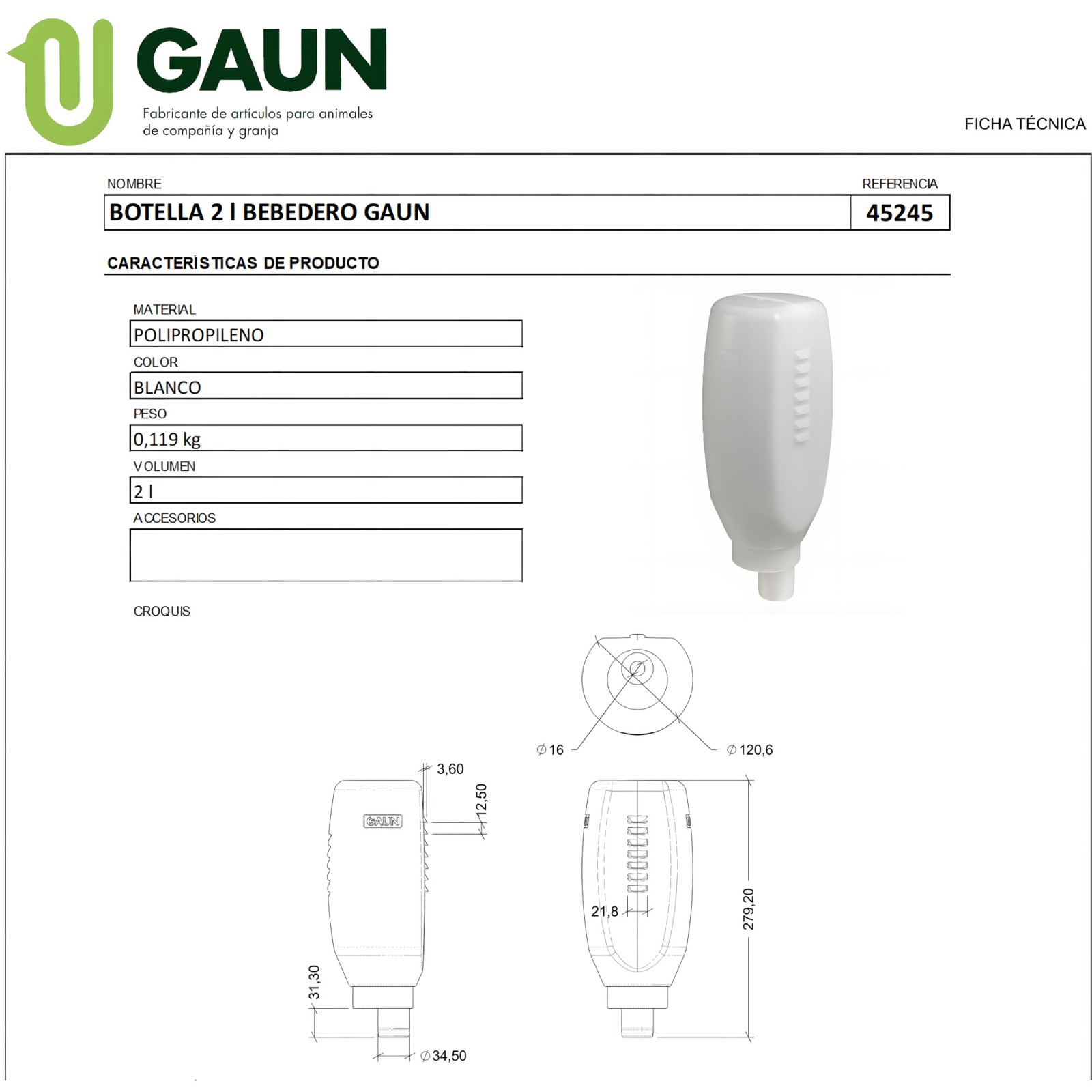 Keep your livestock hydrated with the Gaun 2-Liter Drinking Bottle.