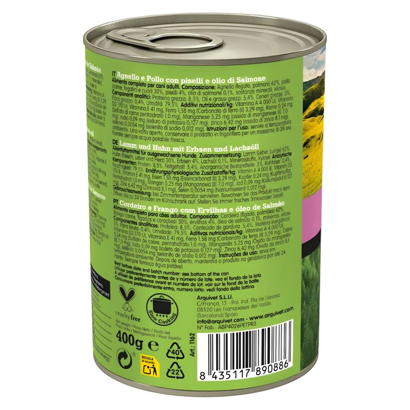 Lata Cordero y Pollo con Guisantes 400g de Arquivet - Natural y Nutritivo