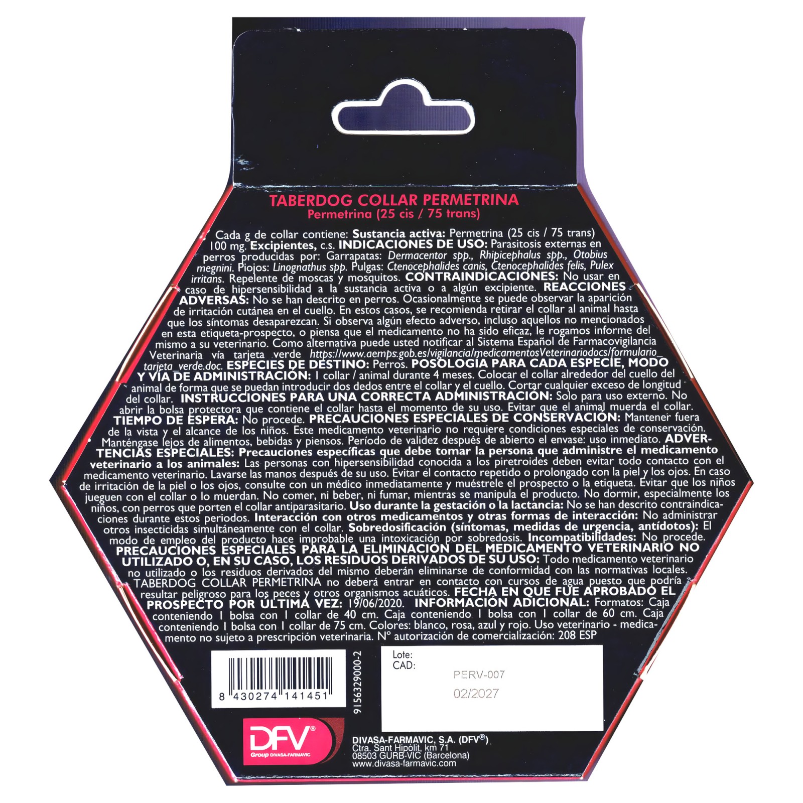 Taberdog Collar Permetrina 40 Cm. - Protección Efectiva contra Parásitos