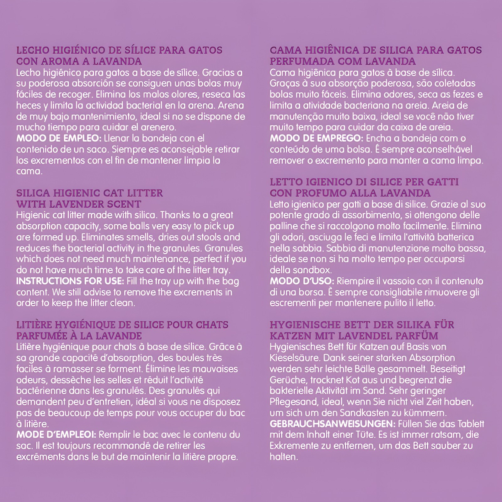 Este producto innovador está hecho de perlas de sílice, ofreciendo una superior absorción y control de olores.