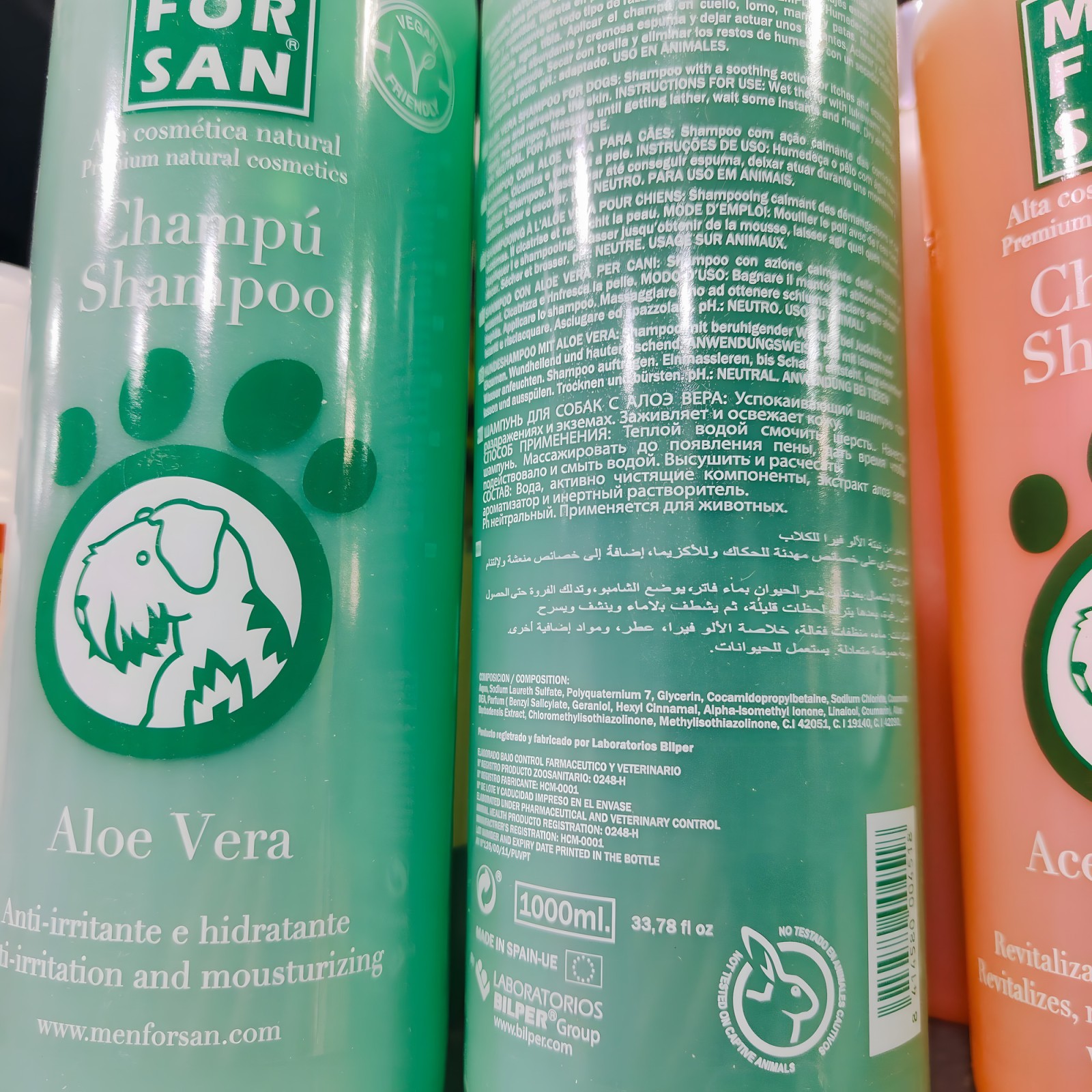 Champú Menforsan con Aloe Vera 1 L - Calmante e Hidratante para Perros