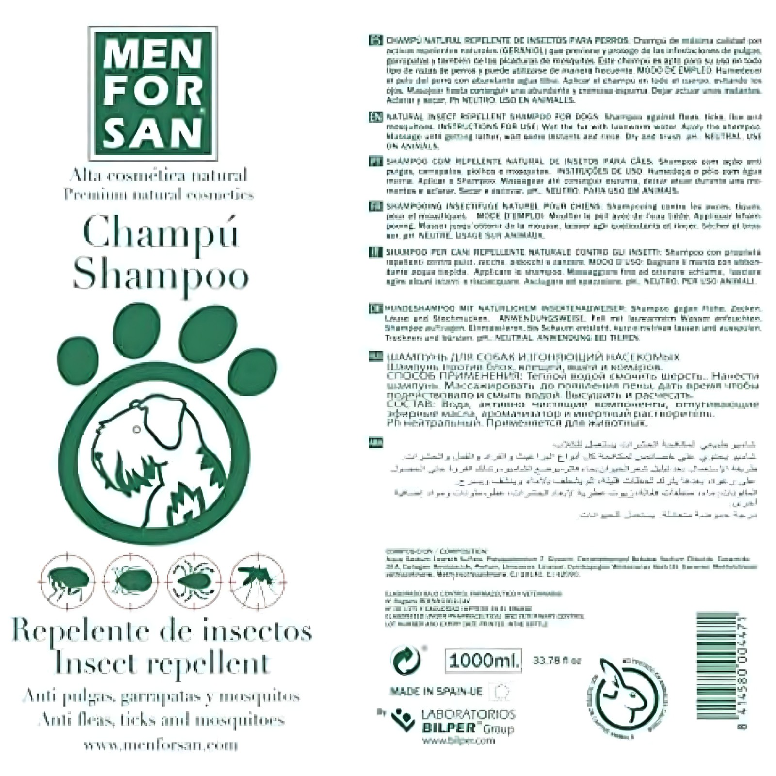 Mantén a tu amigo peludo protegido de parásitos molestos con el Champú Repelente Menforsan.
