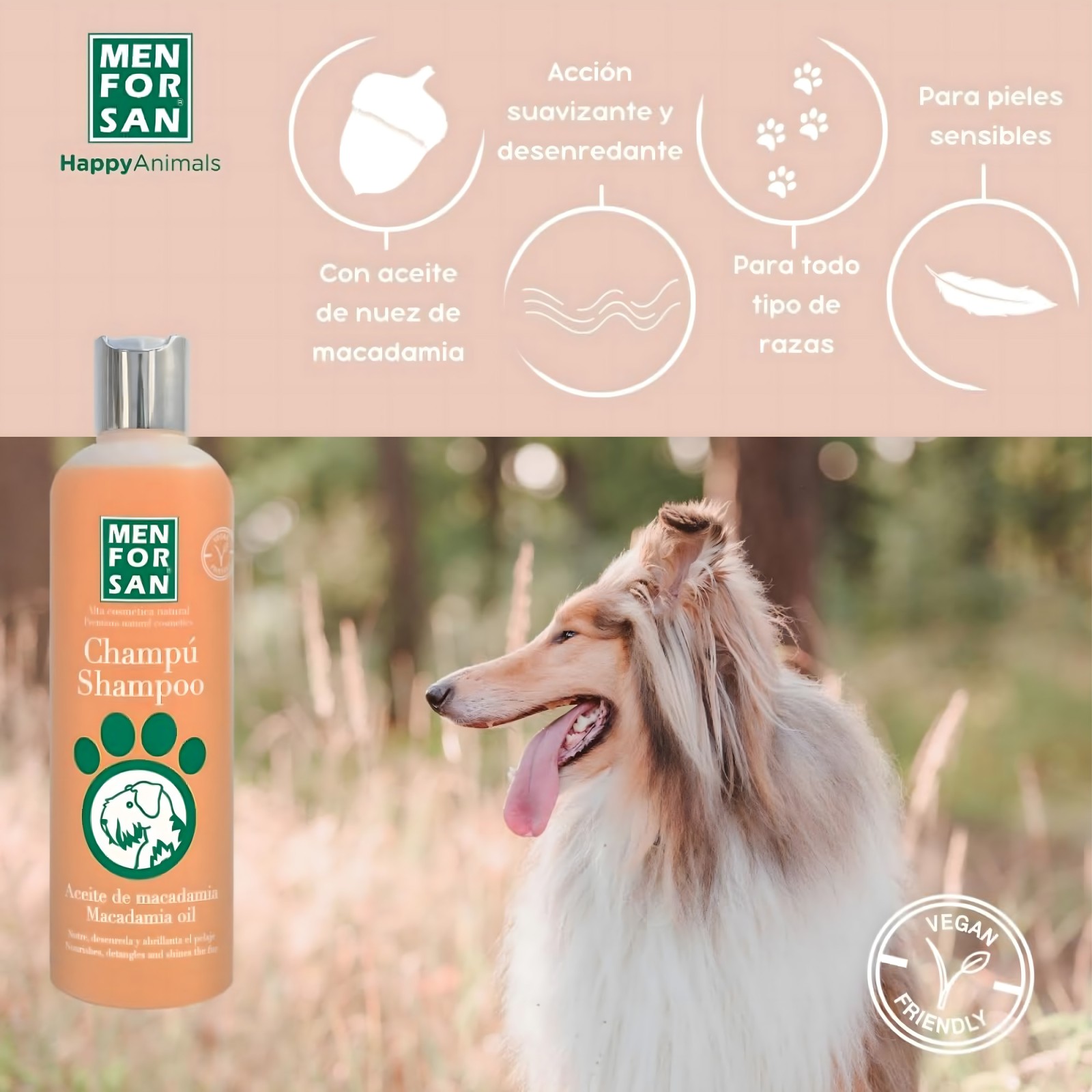 Champú Menforsan Aceite de Macadamia 300ml - Cuidado Natural para Perros