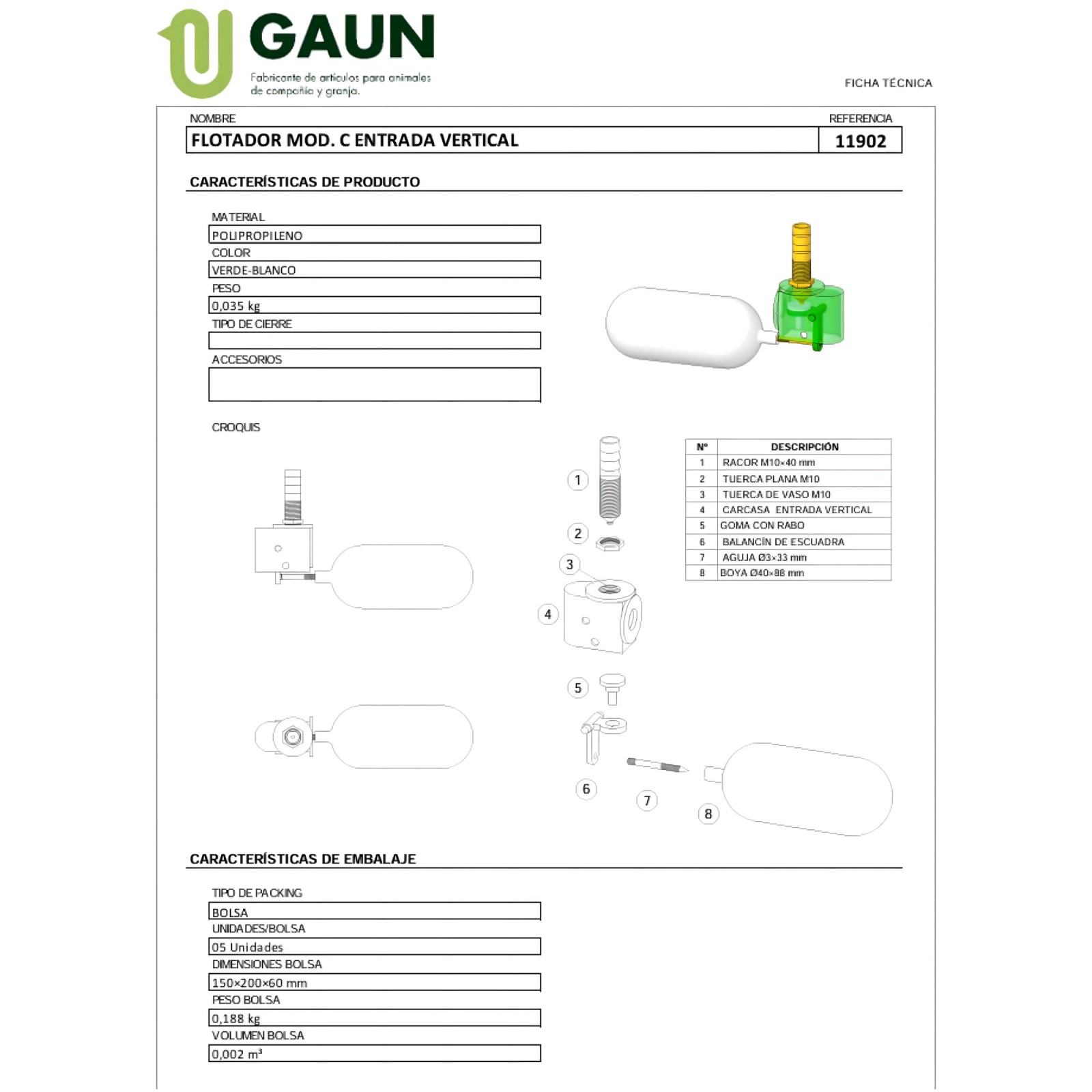Presentamos el Flotador Mod.c Entrada Vertical, diseñado para sistemas de alta y baja presión.