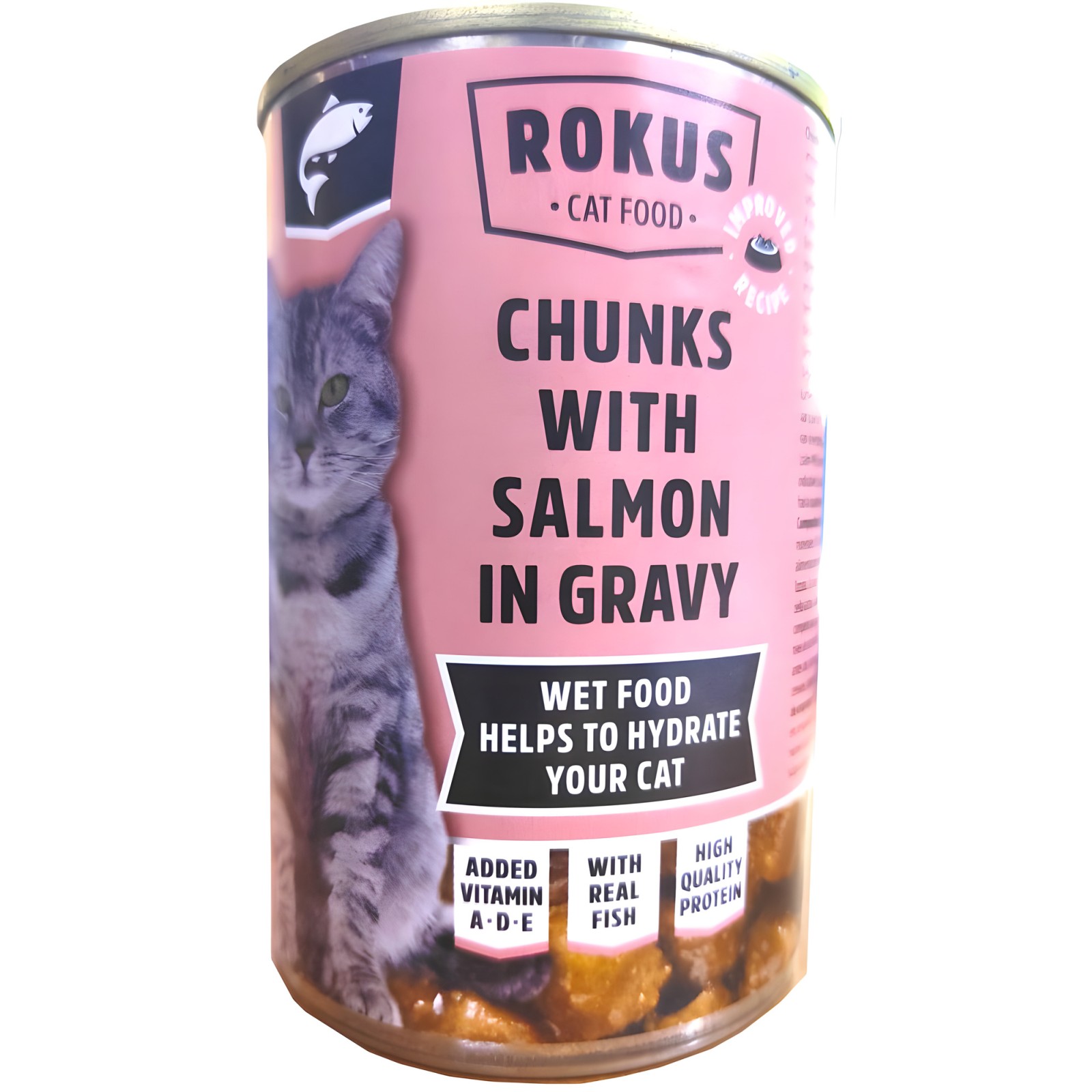 Proporciona a tu amigo felino una comida equilibrada con la Comida para Gatos Rokus en una conveniente lata de 415g.