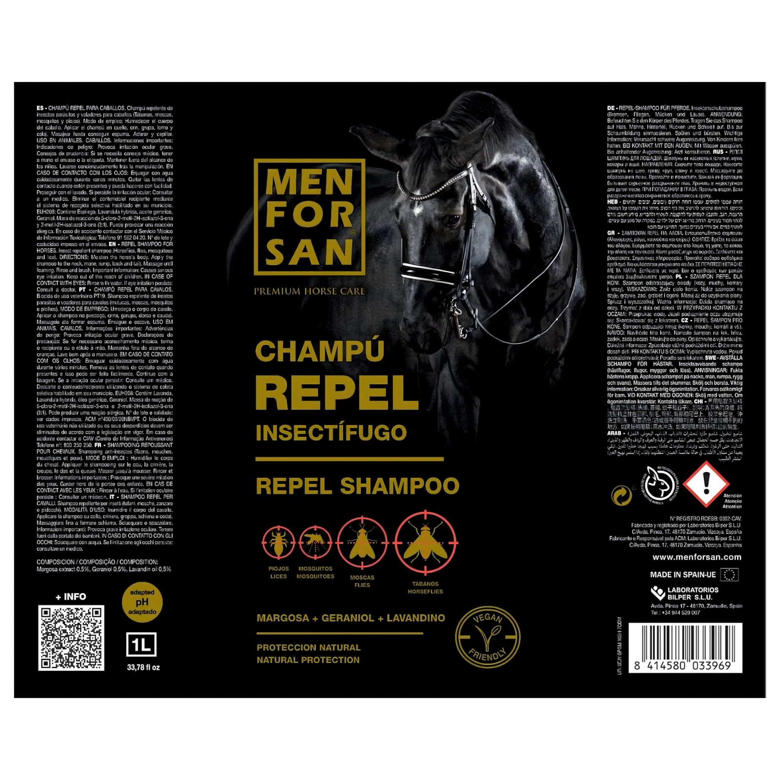 Protege a tu caballo de plagas no deseadas con el Champú Repelente de Insectos Menforsan.