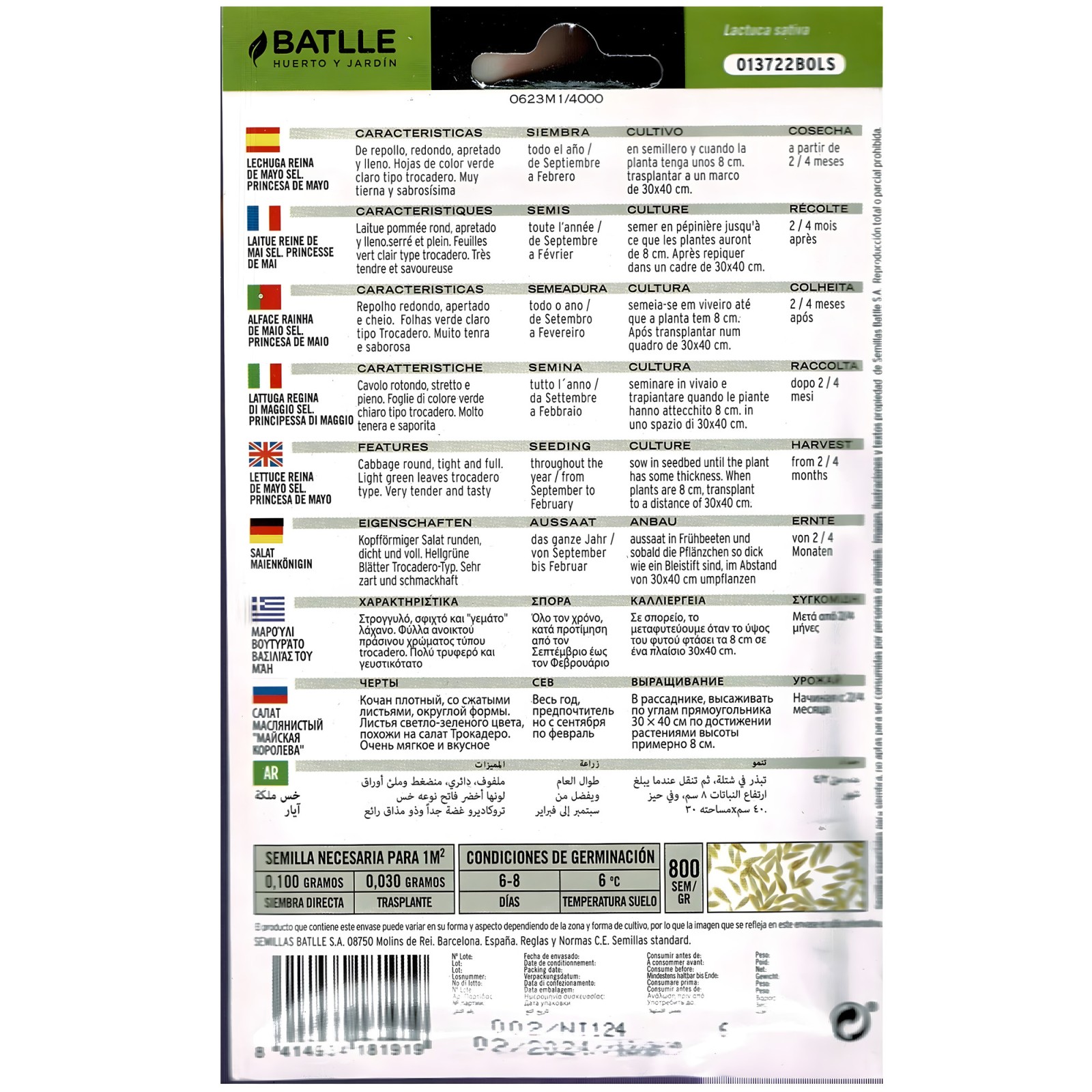 Semillas de Lechuga Batlle - Reina de Mayo Princesa para Cultivo Todo el Año