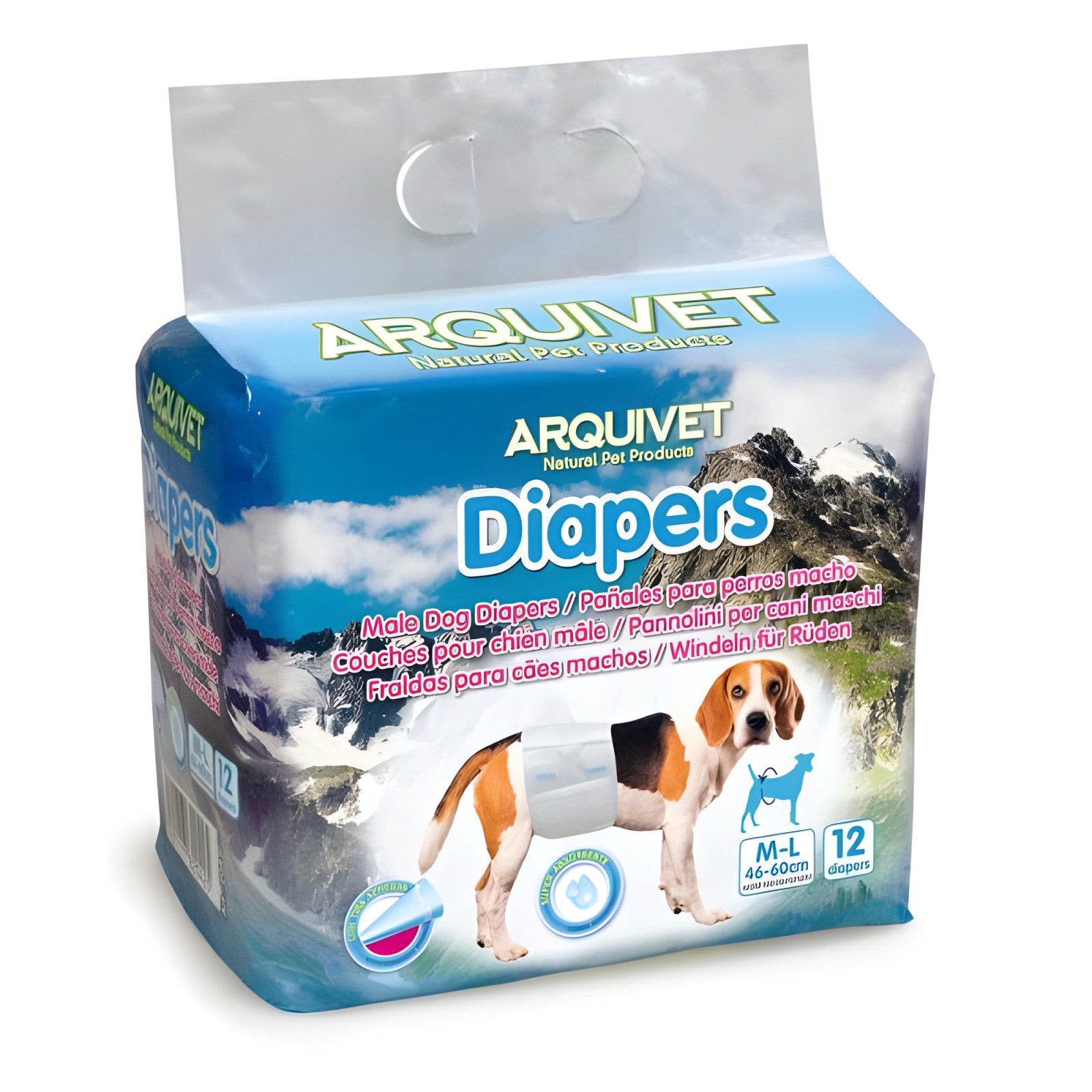 Asegúrate de que tu perro macho se mantenga limpio y cómodo con los Pañales para Macho de Arquivet.