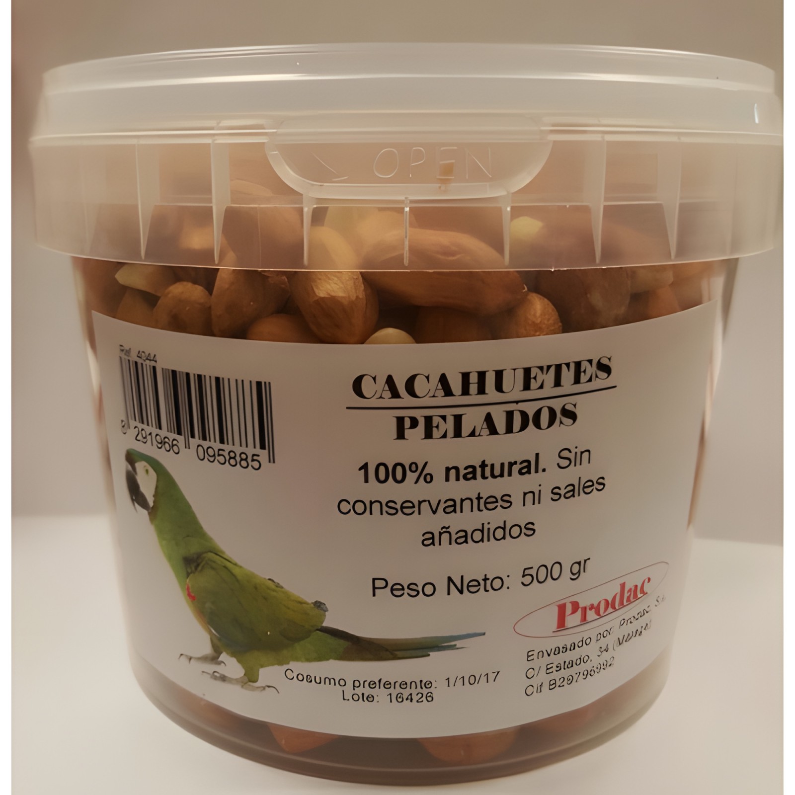Presentamos nuestros Cacahuetes Pelados de Prodac, ¡un bocadillo nutritivo para tus aves! Este saco de 500g está lleno de nutrientes esenciales que apoyan la salud y el bienestar de tus aves.